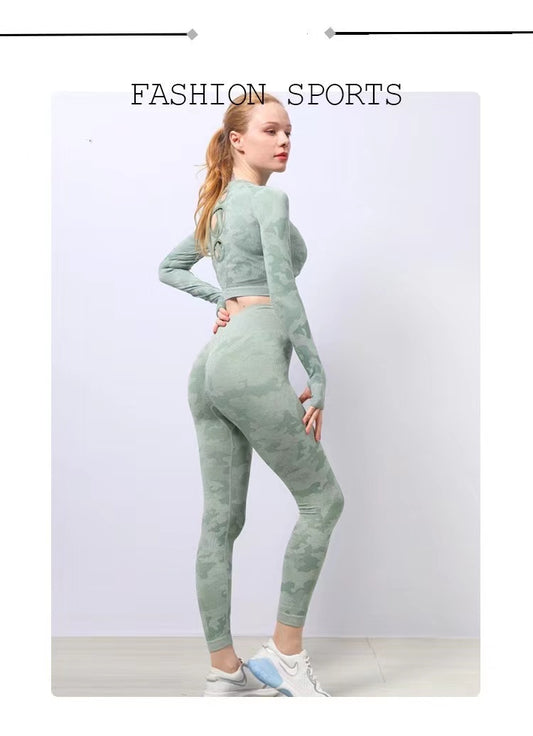 Green Camo Print Thumb Hole Full Sleeve Top - Amelia
