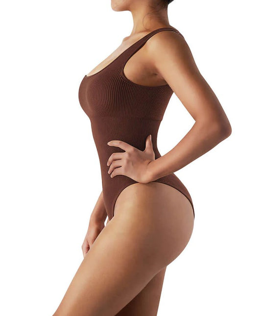 Brown Ribbed Tummy Control Sleeveless Bodysuit - Zoe